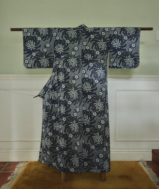 Cotton yukata with shibori indigo chrysanthemum print