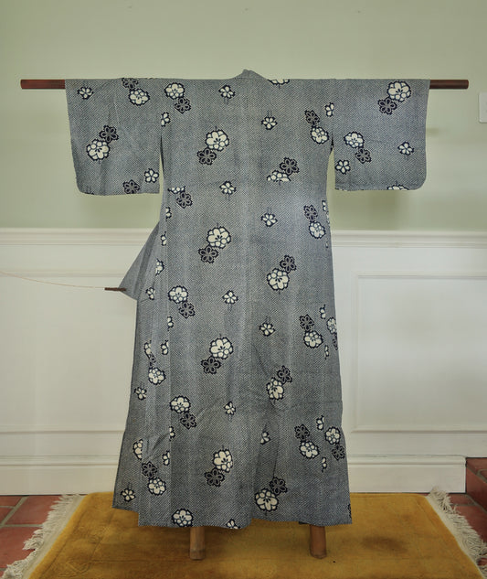 Cotton yukata with shibori blossom print