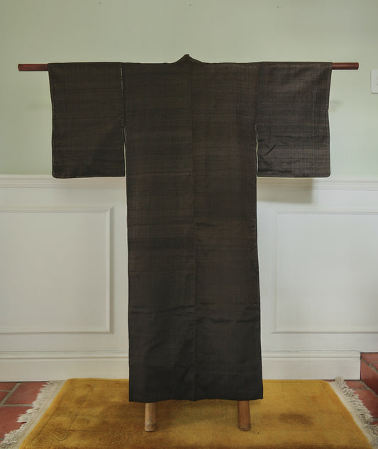 Antique kimono, brown handwoven silk